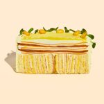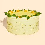 Основа з ванільного бісквіту, просоченого цукровим сиропом і складеного в рулет з вершковим кремом, манговою намелакою та лаймовим гелем.