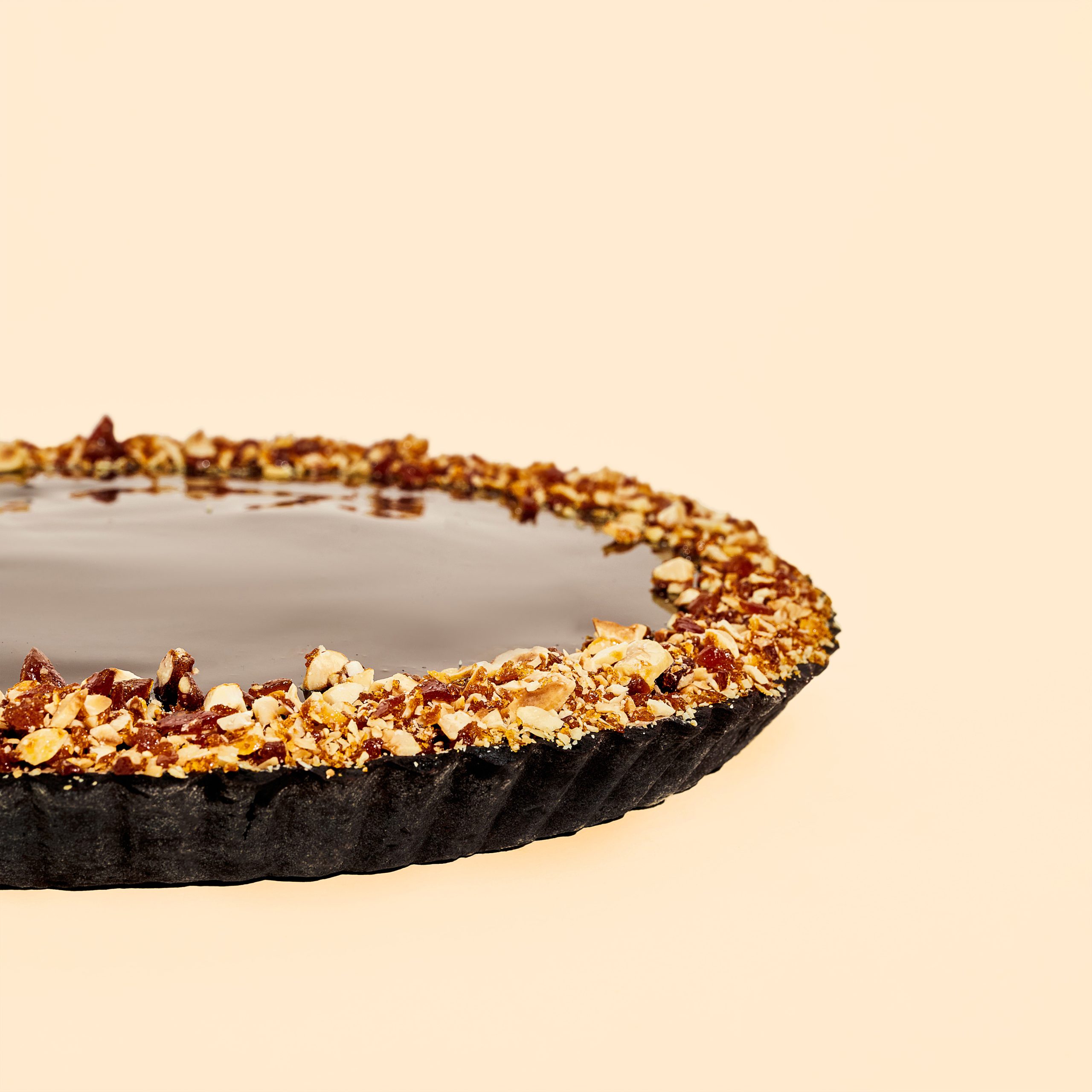 Шоколадний мус, солона карамель, пісочно-шоколадна основа.